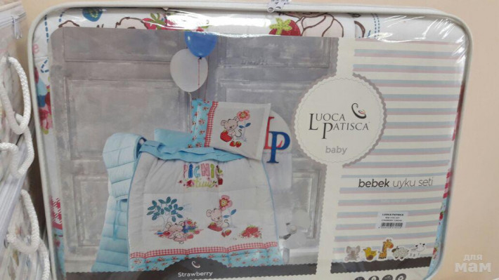 Состав: 100% хлопок, наполнитель одеяла - гипоаллергенное волокно. Материал ранфорс Размер: простыня - 100*170 см, пододеяльник 110*160, защитные бортики 40*60, 40*140, наволочки 35*45 см - 2 шт., одеяло - 95*145 см Цвета в ассортименте. Производство Турция, цена 4000. Есть самовывоз и доставка по Москве.