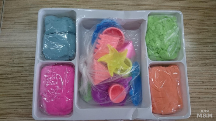 2. Кинетический живой песок, поиграли 1 раз. Всего 4 цвета, открыли только 1.