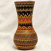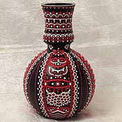 Стеклянная ваза, ручная роспись в технике point-to-poin ( точечная роспись ).