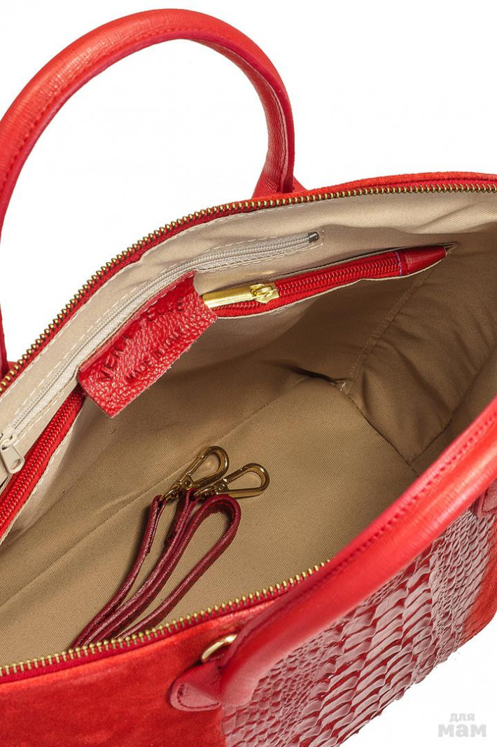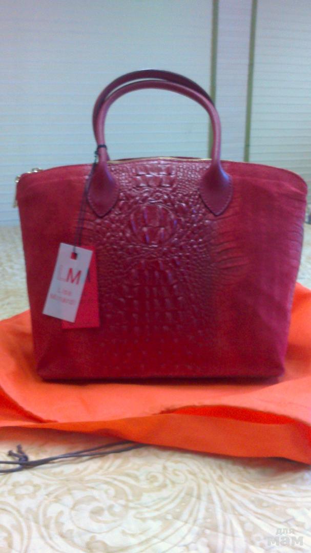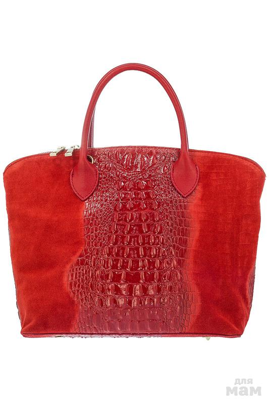 Вместительная сумка с двумя ручками и съемным плечевым ремнем. Внутри два отделения, карман на молнии, отделение для телефона. Параметры изделия: 34см x 14см x 28см. Цвет правильно передан на рекламных фото.