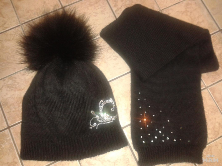 Шапка+ шарф, шерсть мериноса, двойная вязка, утеплена флисом, есть резиночка-спандекс внизу, можно с помощью ее сделать по своему размеру, помпон из енота, снимаемый. Заказывала для себя на заказ, здесь же "Для мам" у Елены, проносила 3 месяца, очень моя любимая вещь, но придется расстаться, т.к. у меня оказалось аллергия на шерсть мериноса(((