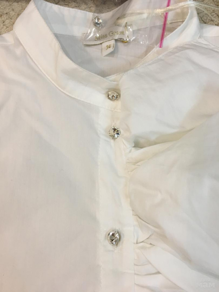 Актуальная коллекция шикарная блузка, качество супер, хлопок, мне кажется чуть маломерит , только получила, брали в школу носить , не подошёл размет , цена 4500, ширина 33 см, длина 49 см, пуговки -большие инкрустированные украшения
