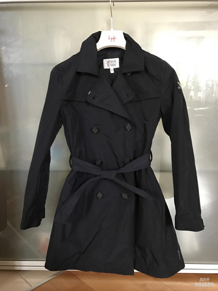 синий плащ армани, точно должен подойти, т.к. есть пояс и можно завязать как вам надо по ширине, замеры - ширина по груди 40, длина 71, длина рукава 51