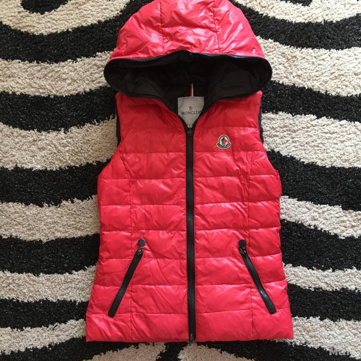 Жилет пуховый Монклер, за оригинальность не поручусь, коды есть. Дочка отпорола с жилетки комиксы. Качество хорошее, состояние тоже