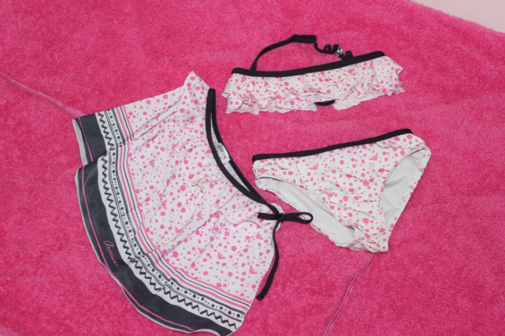 Купальник Армани 4г. 1000руб. надо подшить резиночку на лифчике(на фото указано) бу активно. очень красивый
