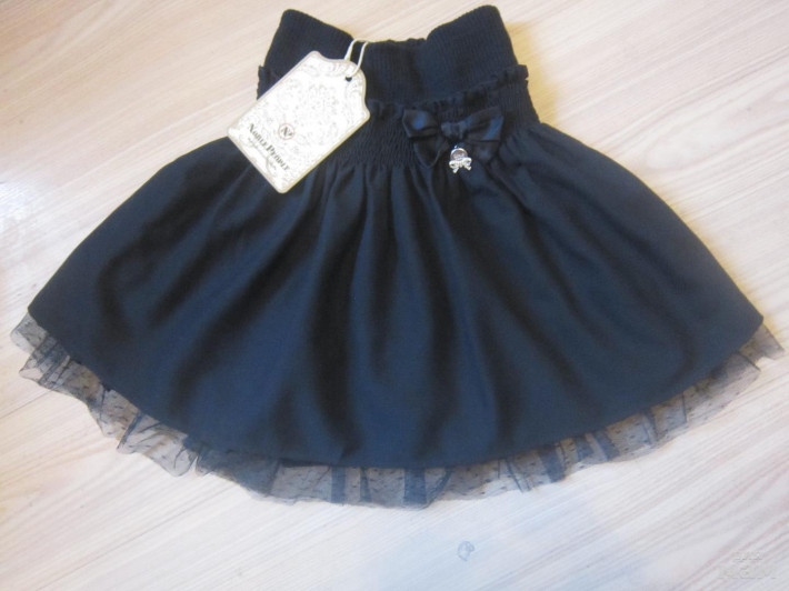 Здравствуйте!Длина юбочки включая сетку 43см.На плотную девочку подойдет.В талии тянется хорошо