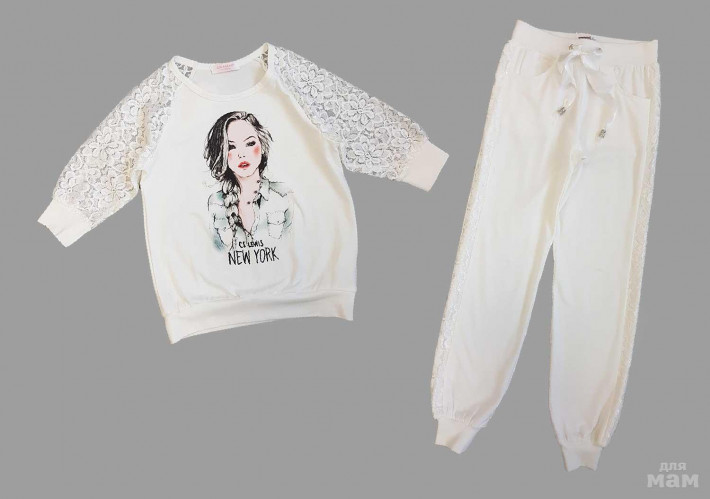 Замеры: Штаны общая длина 91см, шаговый шов 73см, в поясе ширина ПО 30см, кофта длина по спинке 55см, рукав 3/4 по внутр.шву 25см.