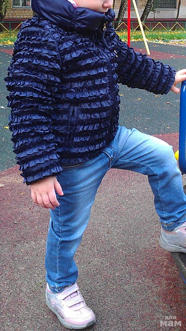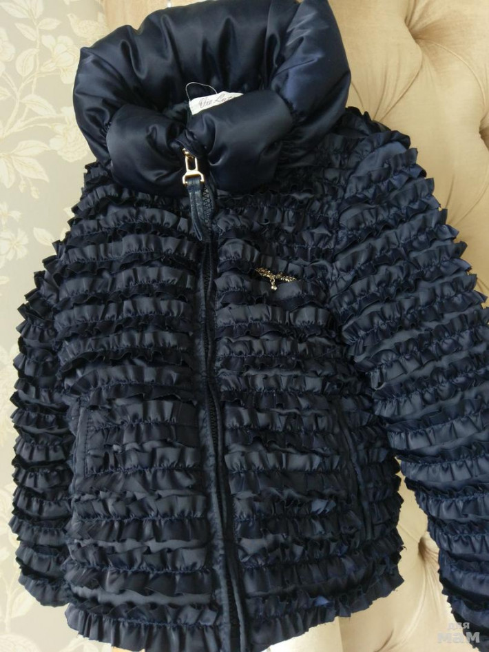 Супер стильная курточка размер 104, носить можно раньше. Внутри имеются манжеты, за счет них садятся по ручке. Очень нарядная!!!