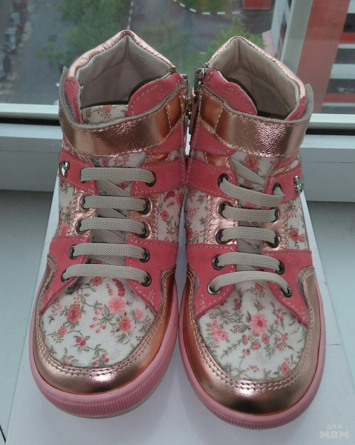 Кожа,замша+текстиль,внутри кожа. Не угадала с размером, дочке впритык, заказывала из Италии. Подошва 21,5, стелька 20 см.