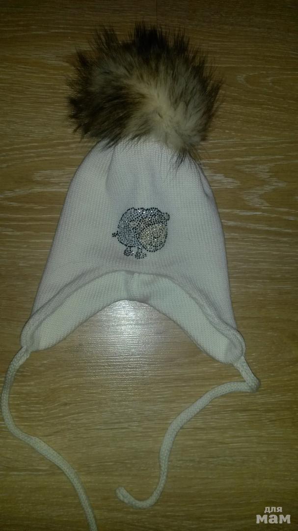 Шапочка новая, без этикетки ( оторвали когда мерили), Двойная, 100% меринос, помпон енот.