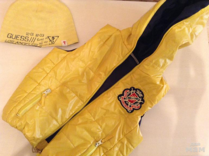 Жилетка и шапка желтые gues на 2-4 года.Комплектом. Шапочка двусторонняя!!! С одной стороны желтая с другой в полосочку.