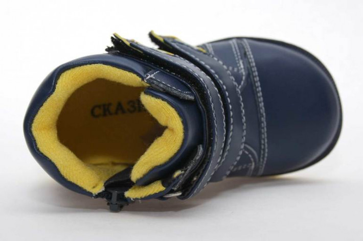 Ботинки Сказка для мальчика. Материал верха - искусственная кожа, внутренний материал - флис. Стелька с супинатором. На молнии и липучках.