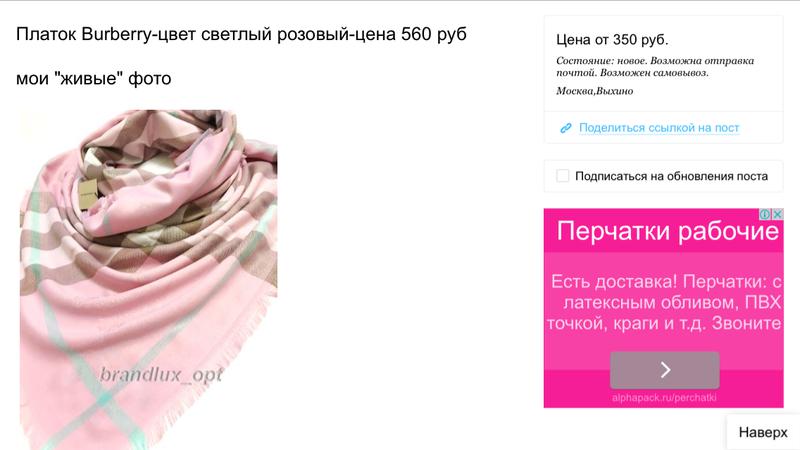 Платок Burberry-цвет светлый розовый-цена 560 руб;