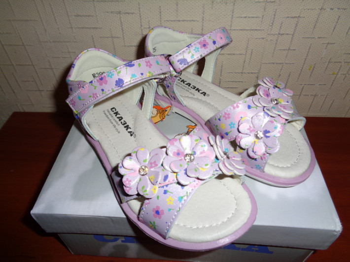 Сандалии Сказка для девочки. Материал верха - комбинированная кожа (натуральная+искусственная), внутренний материал - натуральная кожа. Стелька - натуральная кожа, с супинатором.
