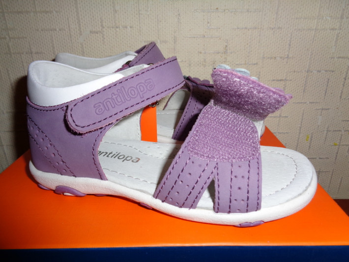 Сандалии Антилопа для девочки. Материал верха - натуральная кожа (нубук), внутренний материал - натуральная кожа. Стелька с супинатором.