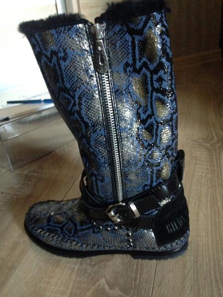 Итальянские зимние сапоги на меху, натуральная кожа. Новые, 38,5 р-р, 25 см по стельке. Высота 30 см, каблучок 2 см, обхват 32см.