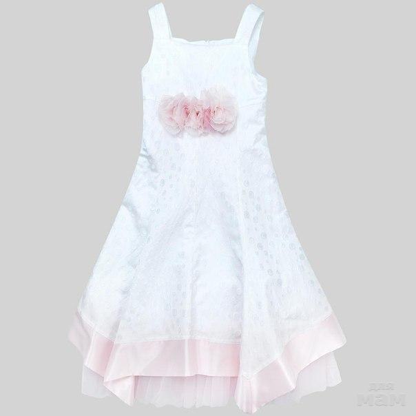 Новое итальянское платье бренд Colorichiari. Белоснежное атласное платье с набивным рисунком, отделка нежно розовым атласом по ассиметричному подолу. Подъюбник пышный, выполнен из сетчатой ткани, такая же ткань использована при шнуровке корсета. Размер 7 лет. 3500р.
