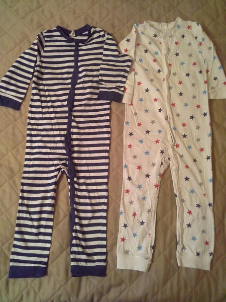 по 300 руб (2 шт.) - белый со звездами, в сине-белую полоску по факту размер ближе к 98