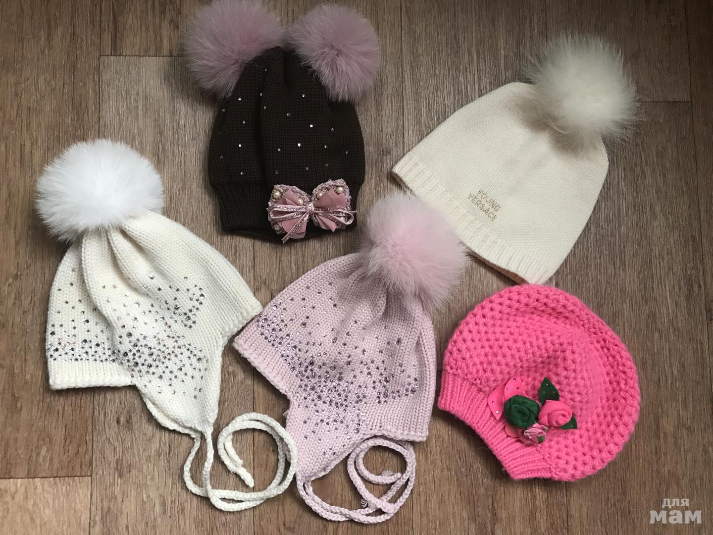 Всё шапочки на ОГ до 52/53 максимум. Ту-ту р-р 48-52 обе, состояние хорошее, стразы все на месте, но я их не стирала, каждая по 500 р., коричневая Джоли Бебе, двойная, р-р указан 8/10А, но реально идёт на ОГ 53, одета раз, 2800 р., кремовая Версаче, р-р S, идёт до 52, 100% шерсть, состояние хорошее, одета раз 5, не больше, но не стирала, 1500 р., розовая береточка Блюмарин, р-р 6, но маломерит, хорошо на ОГ 52 и меньше, 1800 р.