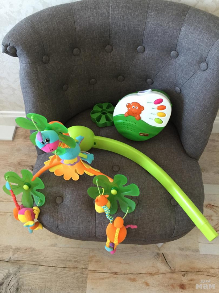 Мобиль в отличном состоянии, все работает. Первые три месяца нам хорошо помог. Малышка отвлекалась на него.
