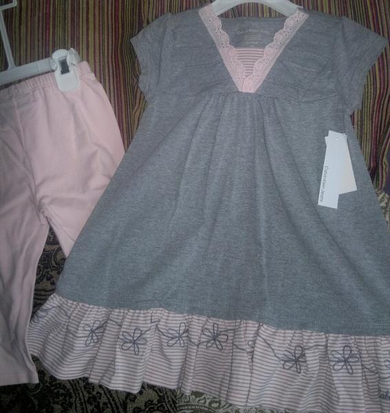 Комплект Calvin Klein Jeans, маркировка 3Т, очень приятный трикотаж, туника: длина от плеча 52 см, ПОГ 31 см, леггинсы: длина по боковому шву 40 см, ПОТ 24/33 см, на левой штанинке внизу вышито название бренда. Территориально м.Беляево.