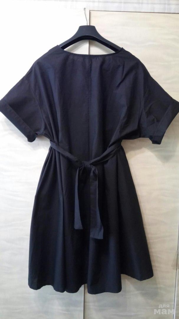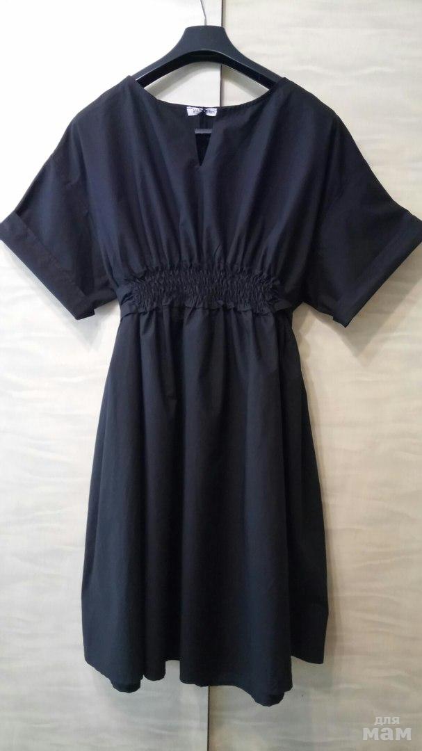 Новое платье, состав 100% хлопок, цвет черный, на поясе спереди резинка сзади завязки. Отлично подчеркнет талию, рукав летучая мышь, по бокам кармашки