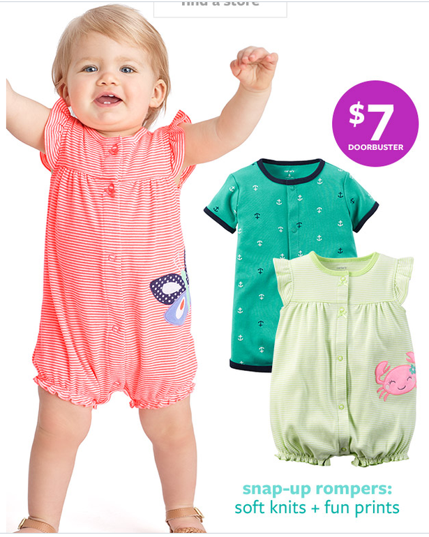 В Картерс и Ошкош бесплатная доставка по США и скидки до 60% в основной коллекции и до 30% на скидочный раздел.