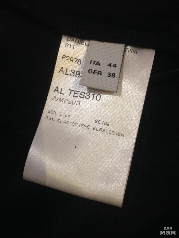 Шелковый комбинезон Daniele Alessandrini, оригинал, маркировка 44it, на М-ку. 94% шелк, 4% эластан. Ооочень приятный и легкий и стильный! В поясе утяжка, по бокам карманы. Стрейч. Брючки зауженные! Ни разу не надевала. На фото не получается. Цвет яркий, черный. Стоил ДОРОГО))