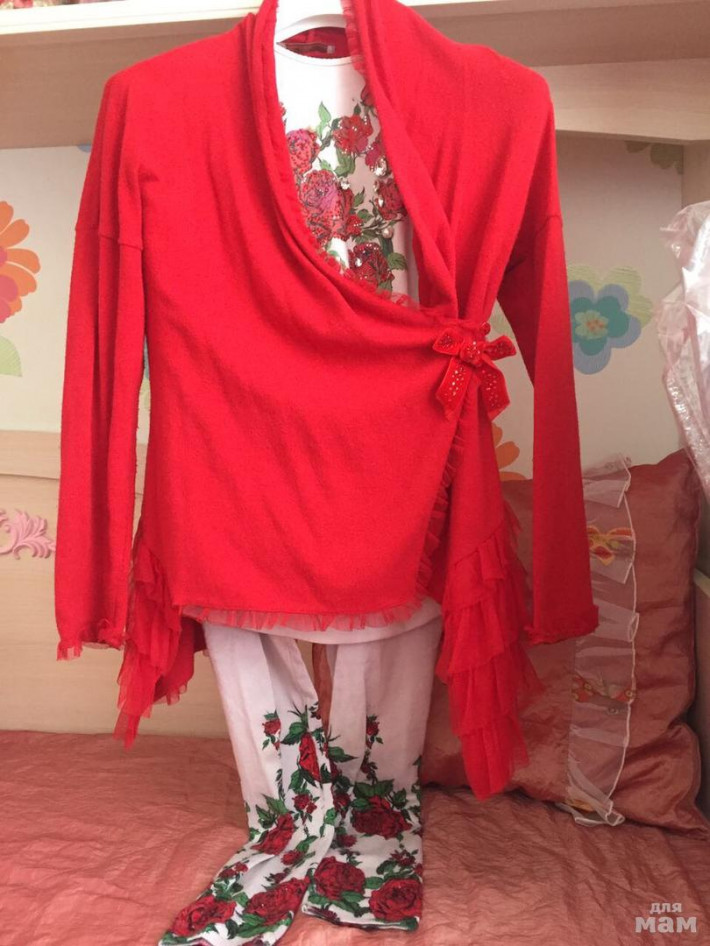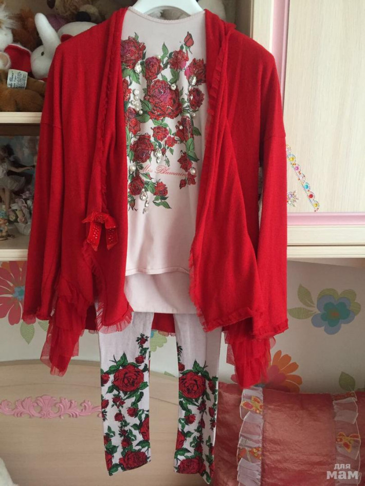 Кардиган и туника 10 лет, лосины 8 лет. Есть катышки, особо незаметны.