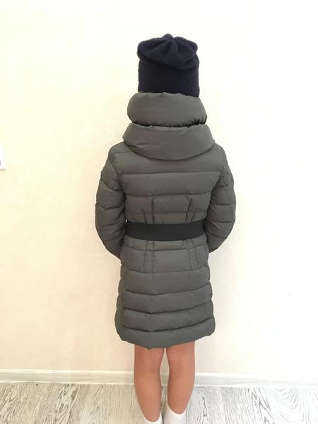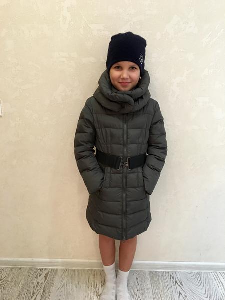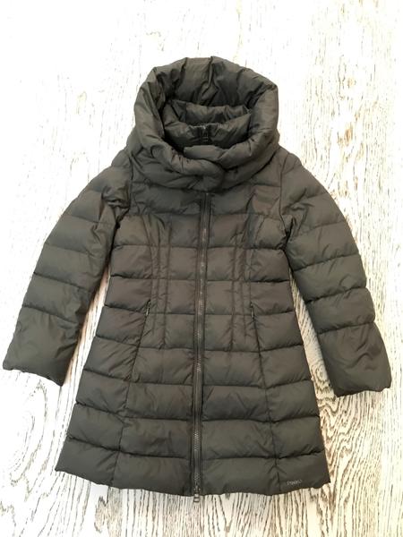 Пальто PINKO р. М (128 см, можно раньше), б/у 1 сезон, высокий ворот-стойка, графитовый цвет, пояс. Наполнитель 90 пух/10 перо