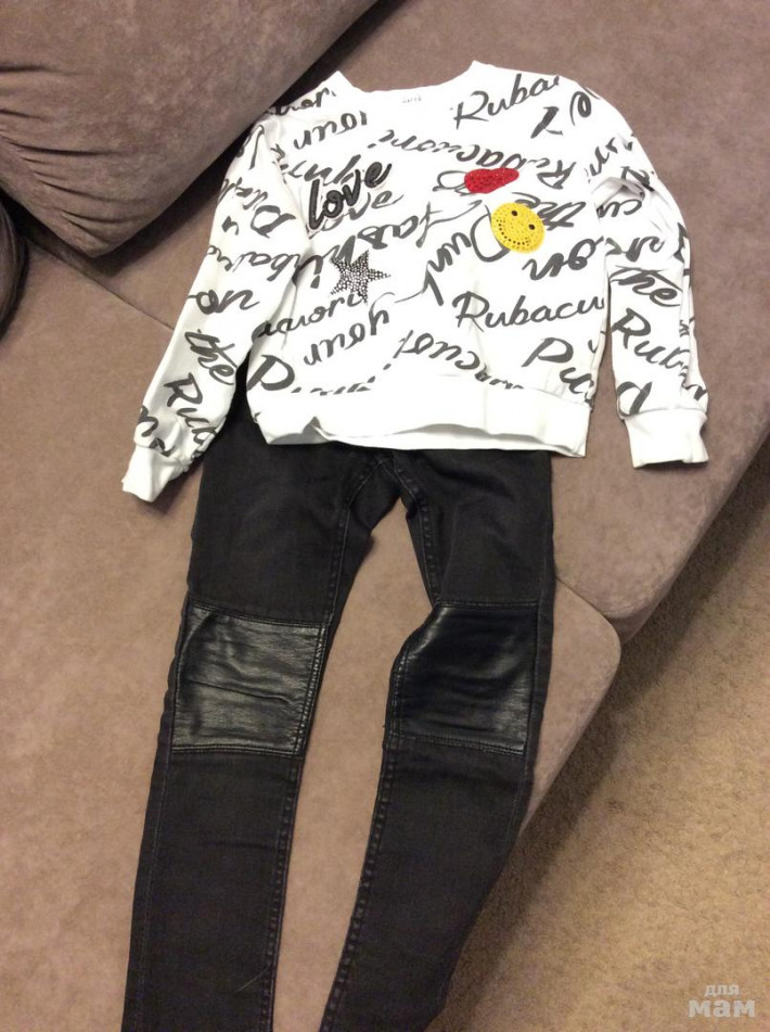 Джинсы НМ с кожаными коленками и кошечкой в кармане(сзади) 6-7лет 300рубКофточка Руба Куори р7 500руб