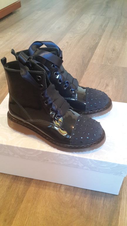 Синие, стильные ботинки , утепленные баечкой