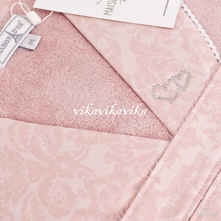 нежно-розового цвета по голень, стразы на сатиновой вставке воротничка, состав: 60% бамбук, 40% хлопок мягкий роскошный халат!