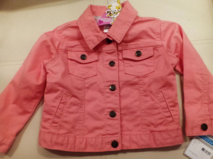 Новая джинсовая куртка американской фирмы carters. На 24 м. С этикеткой. К ней есть джинсы новые р. 24 мес. Цвет розово-коралловый. На кнопочках. Джинсы цена 1500 р.