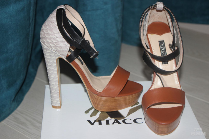 Абсолютно новые босоножки в коробке. Размер 35,но идут на 36. Мне на 35 велики. На ножке сидят очень аккуратно и стильно. Кожа.