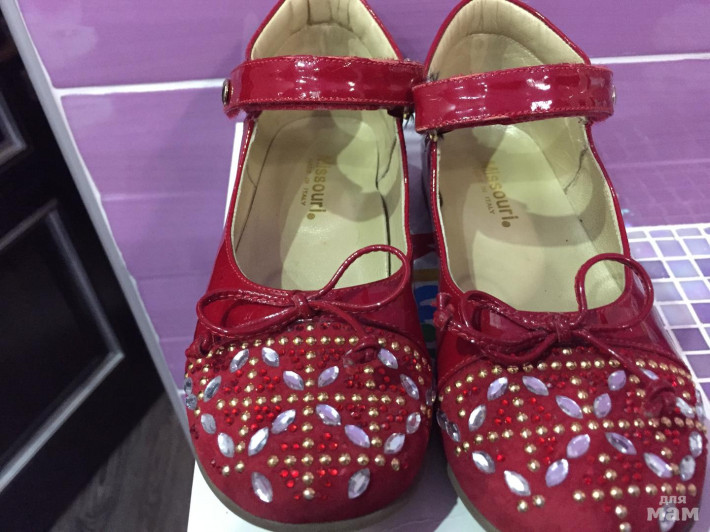 Состояние хорошее, трещин сбитых носов и пяток нет. Стразы не все на месте, но по центру все ок. Состояние на фото. Подошва не сбита носили как сменку на развивайку