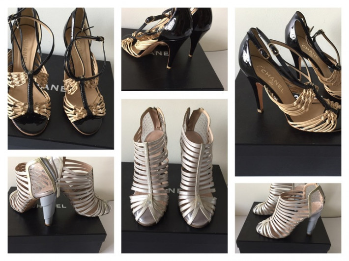 1.Босоножки CHANEL 39.5 размер. Серый лак,винтовой каблук. (20 тыс)