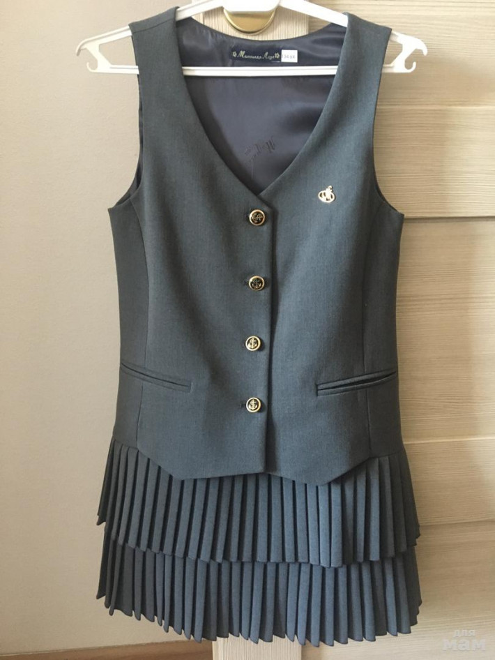 Стильный сарафан серого цвета. Состояние идеальное. Следы носки отсутствуют. Качество невероятное. Сидит идеально. Рост 134, не маломерит.