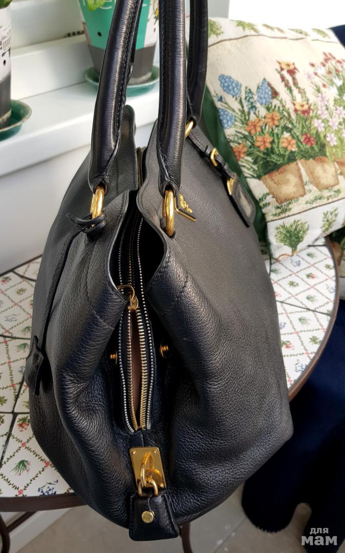 Оригинал сумка PRADA с идентификационной картой (на обратной стороне указано место и дата продажи в том числе), пыльником (если он кому-то нужен:))). Состояние отличное- единственный ньюанс- внизу небольшая зацепка (последнее фото). Решается жидкой кожей или кремом если нужно. Специально ничего не делала чтобы на фото была очевидней. Подкладка полностью кожа. Есть небольшие участки чуть более затемненные но только как будто тень. Все на фото.