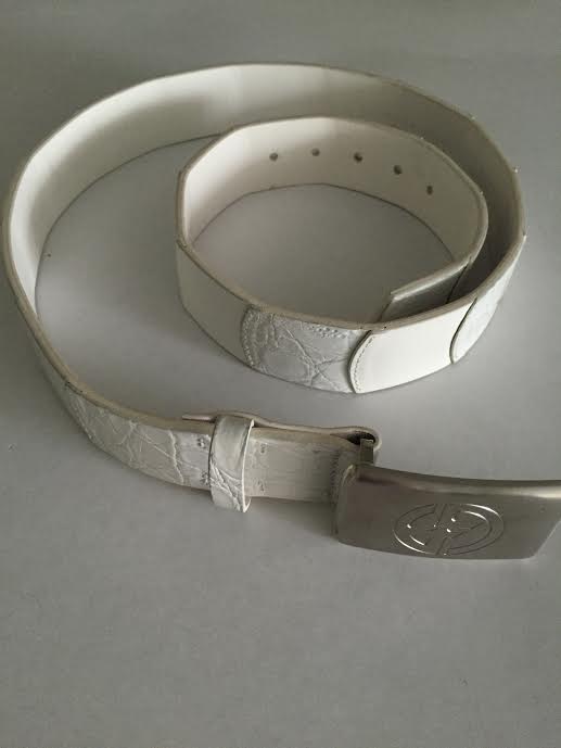 5. белый ремень ARMANI , идеальное состояние . Комбинированная кожа гладкая и под крокодила . Размер 48. Длина 96 см, ширина 3,5 см . Ремень 1-ая линия!!! Giorgio Armani.(5000 руб)
