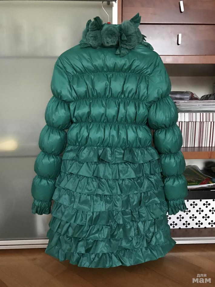 Пальто в отличном состоянии, наполнитель пух 80/20, демисезон, украшения на воротнике из меха кролика. На рост до 146, можно со 134
