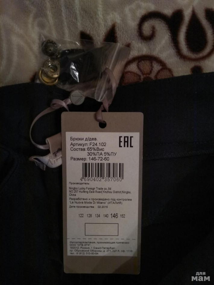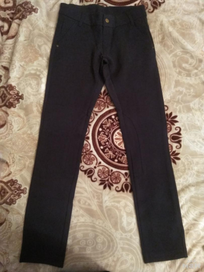 1. Брюки Д-ли, цена 1700, ткань Джерси, цвет т.синий р.152 полнота 2, но все равно на худышку. Наружный шов 94,5, внутренний шов 72, п/обх в бёдрах 40,5, в талии 29,5 без растягивания резинки. Резинка плохо тянется. В талии брюки не регулируются.