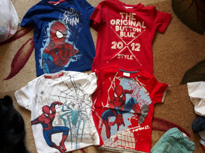 1. Футболки с человеком пауком. По 300 руб. Маркировка 2-3 года. 98 см.