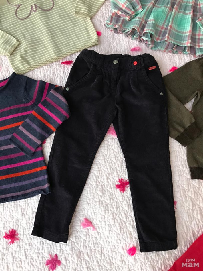 1. Вельветовые брючки boboli (темно-фиолетовые) р.104 (4) есть утяжки 700 рублей2. Треггинсы красные okaidi р.102 (4) есть утяжки 500 рублей