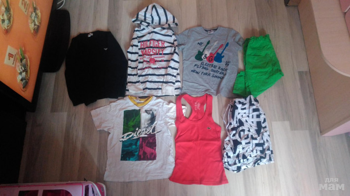 Джемпер черный армани марк8. Кенгуру полосатое томми хилфигер марк8. Футболка дольче серая бархат марк6. Футболка белая дизель марк7. Шорты зеленые бенетон марк7. Шорты кельвин в подарок.