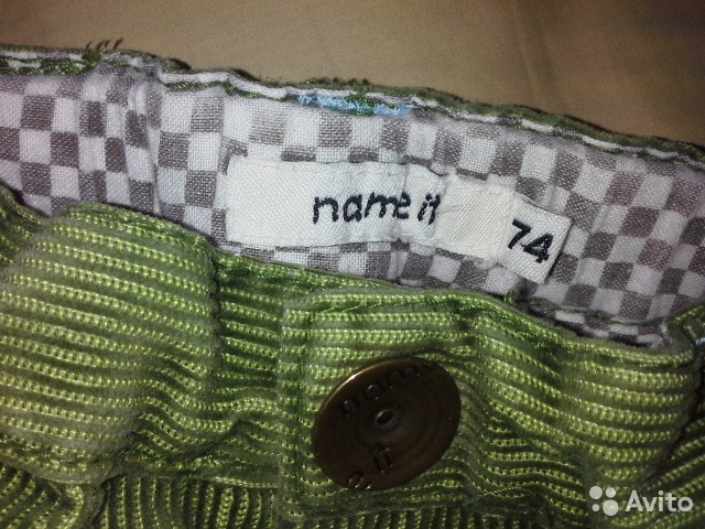Вельветовые брюки фирмы Name it. Брюки с хлопковой подкладкой. Застегивается на кнопку. Состояние идеальное. Цвет болотно зеленый. На 3 фото реальный цвет.