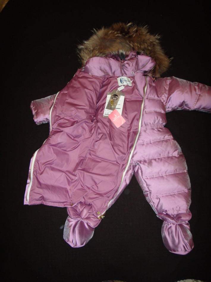 Продам новый с биркой шикарный пуховой (100%) комбинезон, размер 12 м. Был куплен в Кенгуру за 24000р. Мех - енот, капюшон на кнопках, отстегивается, пинетки тоже, в рукавах манжеты, отделка кожей, перламутровые (натуральный) пуговицы.