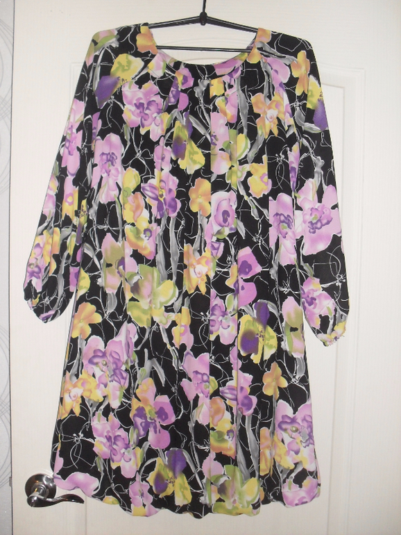 Платье, размер 48 (крой - свободный подойдет и на больший размер). Длина спереди - 83 см, по спинке 93 см, рукав - 44 см. 400 руб.