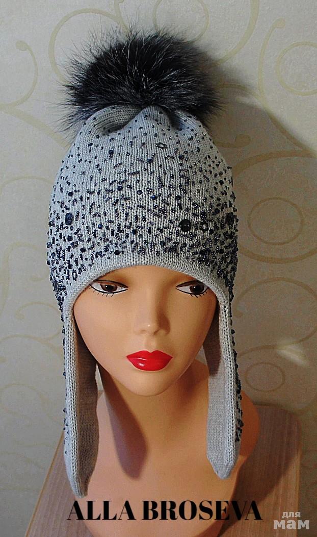 . очень красивый и насыщенный серый цвет (очень мягкая и не грамма не колючая нитка) подойдет для самых чувствительных . Шапочка украшены стразами,бисером,камнями, украшения по всей шапке, каждая бусинка ( а их 1900 шт) пришиты в ручную. Все украшения хороших фирм, своровски, чешский бисер,асфур. Помпон,мех чернобурки 17см Так же исполню в любом цвете и размере , на такие шапочки беру заказы не много, 3-4 на мес, так как очень долгая и трудная работа))) Спасибо за понимания.