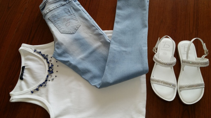 Одинаковые джинсы в двух размерах. Сидят отлично по фигурке, лучше на худенькую девочку.
